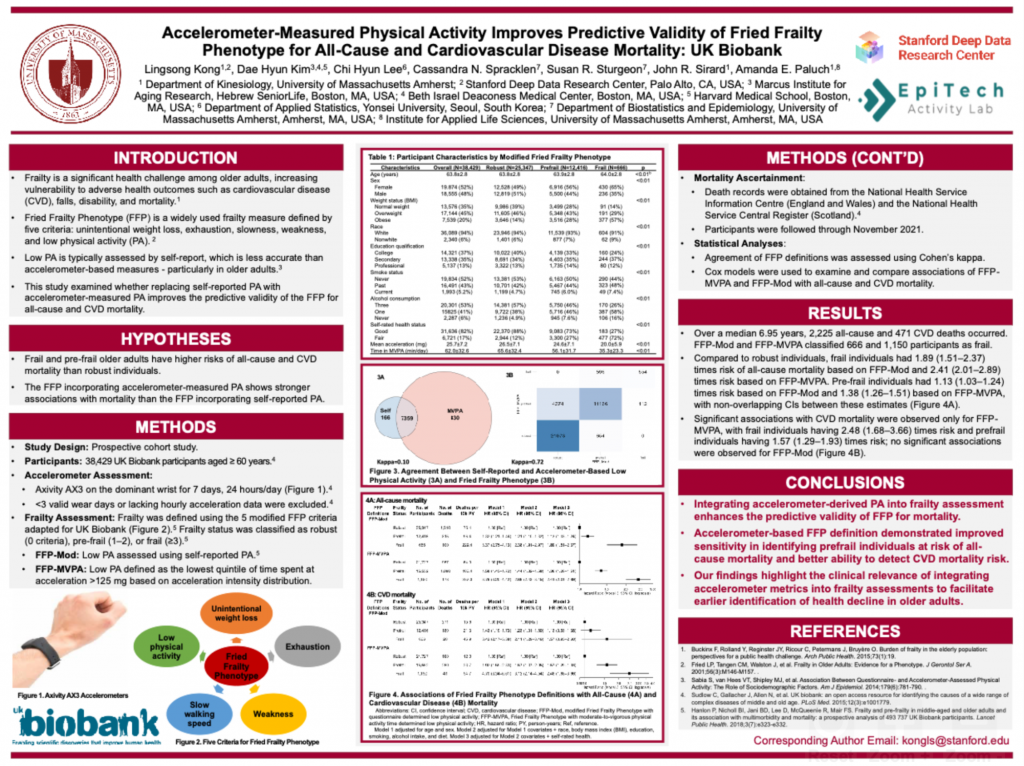 Abstract:  Introduction: Fried Frailty Phenotype (FFP) is a widely used frailty measure defined by five criteria: unintentional weight loss, exhaustion, slowness, weakness, and low physical activity (PA). Low PA is typically assessed by self-report, which is less accurate than accelerometer-based measures. This study examined whether accelerometer-measured PA improves the predictive validity of FFP for mortality.