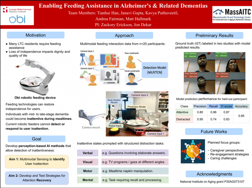 Title: Enabling Feeding Assistance in Alzheimer’s & Related Dementias Authors: Tianhui Han, Janavi Gupta, Kavya Purhuveetil, Andrea Fairman, Matt Hallmark, Zachary Erickson, Jon Dekar