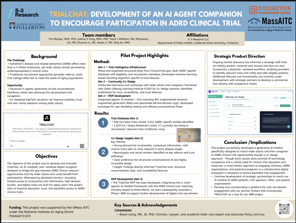 Title: TRIALCHAT: Development of an AI Agent Companion to Encourage Participation in ADRD Clinical Trail Authors: Tim Mackey, Joshua Yang, Tiana McMann, Mingxiang Cai, Zhuoran Li, Jiawei Li, Qing Xu